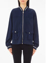 Felpa in interlock di misto viscosa stretch Colletto bomber Tasche con patta e bottone Bordi con motivo a righe Logo ricamato sur ton sul petto Tirazip logata Chiusura con zip