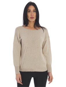 Solada Pullover Donna Oversize In Maglia Scollo V Beige Taglia Unica