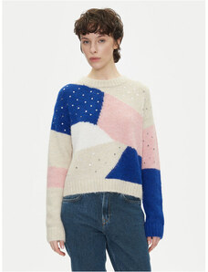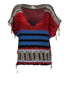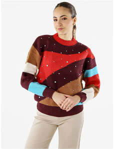 Solada Maglione Donna Oversize a Blocchi Di Colore Con Strass - Rosso Taglia Unica