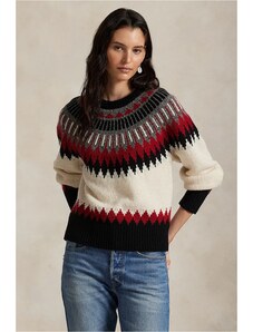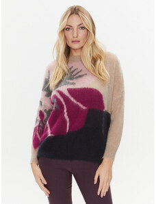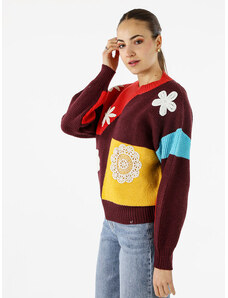 Solada Maglione Donna Oversize a Blocchi Di Colore Con Ricami - Rosso Taglia Unica