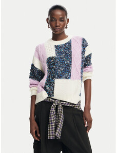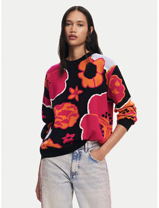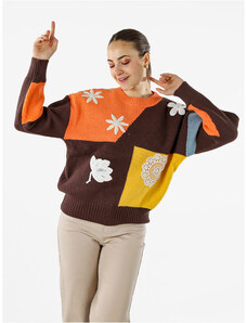 Solada Maglione Donna Oversize a Blocchi Di Colore Con Ricami - Arancione Taglia Unica