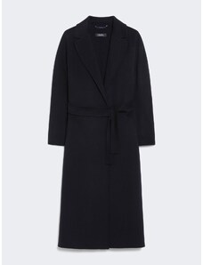 Cappotto di Max Mara Studio in misto lana vergine, seta e cashmere nero • cintura abbinata da annodare in vita • maniche lunghe • due tasche laterali • design sfoderato
