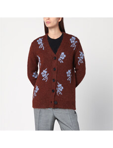 Jil Sander Cardigan marrone con intarsio floreale