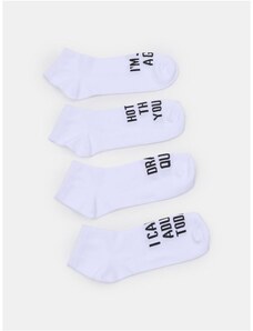Sinsay - Set di 4 paia di calzini corti con testi umoristici - bianco