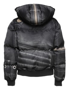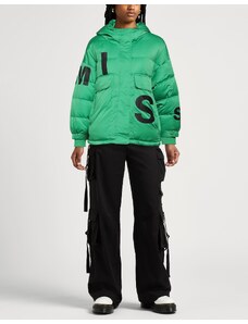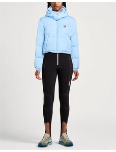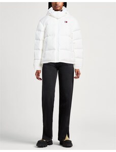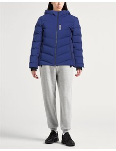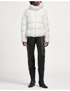 Tessuto tecnico Trapuntato Brand logo Tinta unita Collo con cappuccio Monopetto Maniche lunghe Interno in piuma d'oca Chiusura con zip Chiusura con bottoni automatici Tasche con patta Contiene parti non tessili di origine animale Lavare in lavatrice Non candeggiare Asciugare in asciugatrice Piumino corto