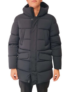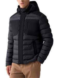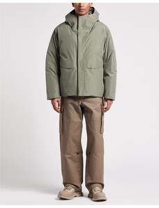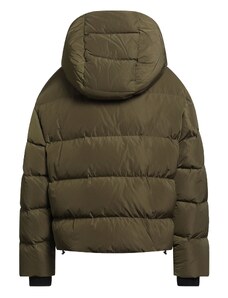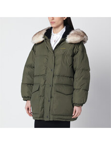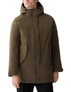 Giacca in taffettà cangiante di nylon riciclato con imbottitura in vera piuma, dall’aspetto liscio. Il capo è arricchito da un collo staccabile in pelliccia di rex in tono colore, con leggero effetto fiammato. Il modello reinterpreta la field jacket militare con gusto cittadino. Le quattro tasche con patta, applicate sul davanti, sono rifinite da cinturini con fibbia, chiusi con bottoni a pressione. Cappuccio fisso con tiranti, chiusura nascosta con zip a doppio cursore e bottoni a pressione. Coulisse elastica in vita con regolazione interna, polsini antivento. Un mix perfetto di comfort e stile per un must-have del guardaroba invernale. Il capo ha ricevuto un trattamento Teflon TM EcoElite che lo ha reso idrorepellente senza l’utilizzo di sostanze inquinanti per l’ambiente.