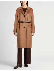 Cappotto con cintura Panno Cintura Brand logo Tinta unita Collo con revers Monopetto Maniche lunghe Interno sfoderato Chiusura con bottoni Chiusura da annodare Multitasche Lavare a secco Non candeggiare Non asciugare in asciugatrice A lavoro Supera ogni sfida con questo look formale e chic che unisce comfort ed eleganza