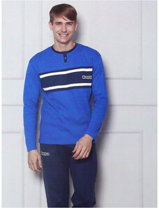 Kappa Pigiama Lungo Da Uomo In Cotone Con Logo - Azzurro Blu Taglia Xl