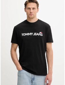 Tommy Jeans tshirt nera uomo in cotone maxi logo sul davanti