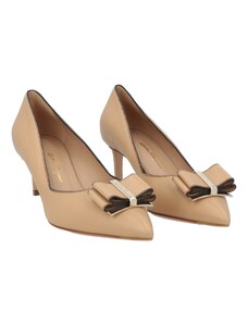 Décolleté Donna Décolleté da donna firmati Salvatore Ferragamo. Tomaia realizzata in pelle. Punta tonda, che presenta dettaglio logato realizzato in metallo color oro. Interno foderato in pelle. Soletta impreziosita da scritta brand stampata e realizzata a contrasto. Suola resistente realizzata in cuoio. Made... Cipria Pelle, Cuoio