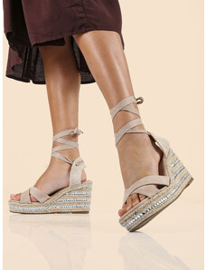 Dame Rose Sandali Donna Con Zeppa Allacciatura Alla Schiava Beige Taglia 37