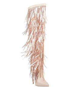 Malu Shoes Sandali tacco donna con fasce trasparenti tacco 12 a spillo e accessorio serpente alla schiava in metallo champagne