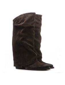 Malu Shoes Stivali donna estivi alti scamosciati forati beige morbidi con zeppa para interna con suola antiscivolo e borchie moda