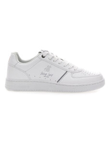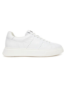 Malu Shoes Sneakers bassa uomo bianca liscia in vera pelle con ganci argento e fulmini fondo army bianco moda giovane street