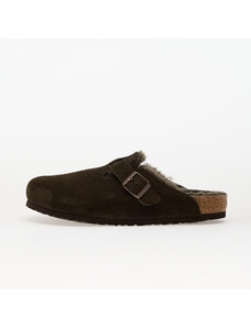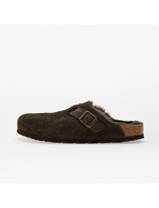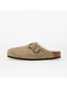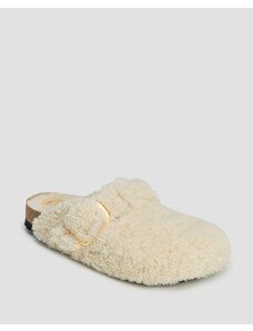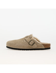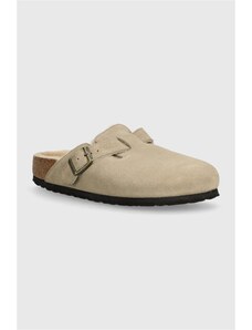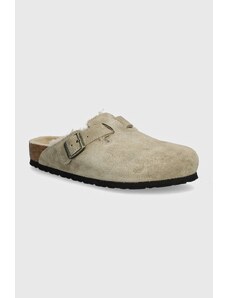 Birkenstock ciabatte slide in camoscio Boston Shearling donna colore beige 1028299