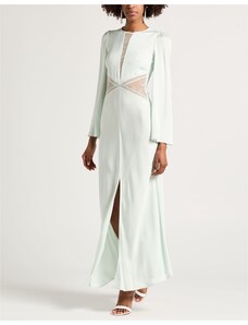 Vestito da gala Raso Tessuto elasticizzato Tinta unita Cristalli Drappeggiato Collo tondo Maniche lunghe Con spalline imbottite Interno foderato Chiusura con zip Spacco laterale Lavare in lavatrice o a secco Non candeggiare Non asciugare in asciugatrice Dress-code elegante perfetto da damigella Da wedding-guest o per ogni occasione speciale
