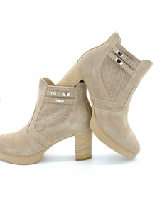 Stivaletto Corina Tronchetto taupe scamosciato con tacco largo 8 cm e fondo crepe made in Spain
