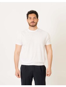 Sun68 tshirt bianca uomo in misto lino mini logo sul petto