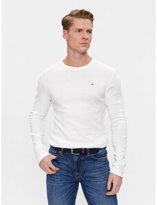 Tommy Jeans tshirt bianca uomo in cotone manica lunga slim fit mini logo sul petto