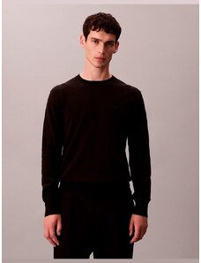 Calvin Klein maglia nera uomo in lana merino mini logo sul petto