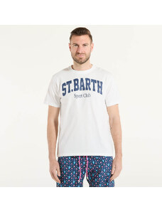 Sun68 tshirt bianca uomo in misto lino mini logo sul petto