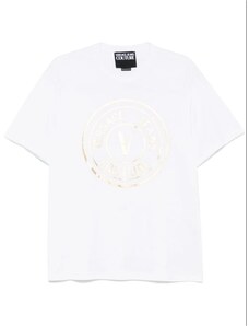 Versace Jeans Couture tshirt bianca uomo in cotone maxi logo in lamina oro