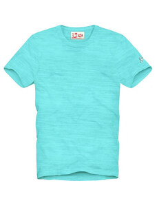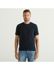 Sun68 tshirt blu navy uomo in misto lino mini logo sul petto