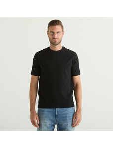 Sun68 tshirt nera uomo in misto lino mini logo sul petto