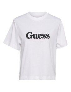 Guess tshirt bianca donna in cotone logo con glitter sul davanti