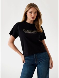 Guess tshirt nera donna in cotone logo con strass