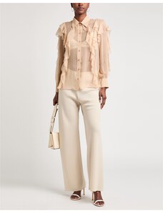 Camicia con ruches Voile Tinta unita Ruches Collo a v Maniche lunghe Chiusura con bottoni Lavare a secco Non candeggiare Non asciugare in asciugatrice Dress-code elegante perfetto da damigella Da wedding-guest o per ogni occasione speciale