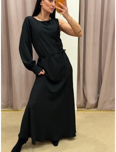 New Collection Vestito Donna In Raso Manica Lunga Vestiti Nero Taglia Unica