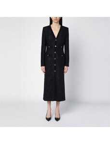 Alessandra Rich Abito midi nero in tweed di paillette con bottoni