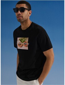 Sinsay - T-shirt in cotone con scritta Fresh and Juicy - nero